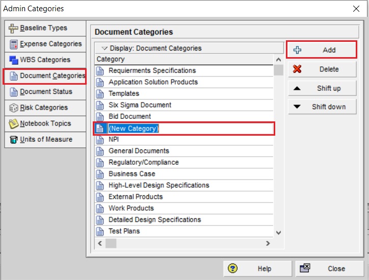 Ako među ponuđenim kategorijama ne možete naći vama odgovarajuću, možete kreirati novu kategoriju. Da biste uneli novu kategoriju dokumenta, izaberite Admin /Admin Categories….