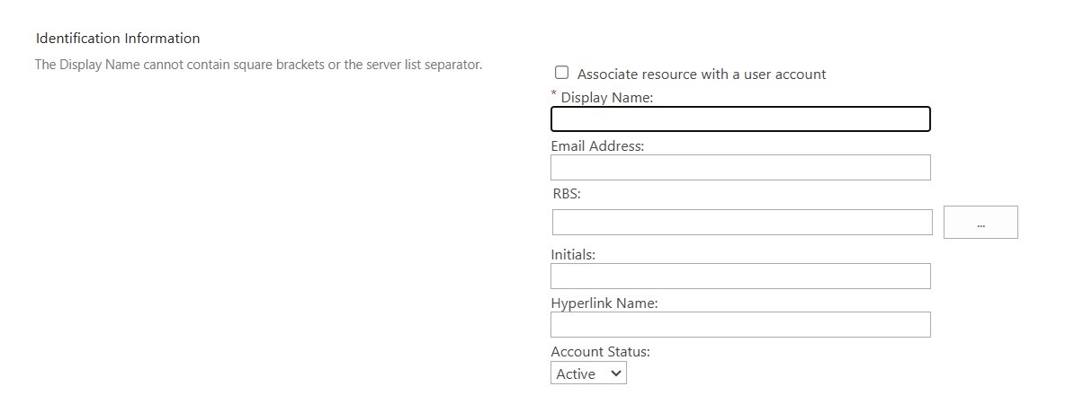 • Account Status – ako želite da novi resurs bude dostupan za dodeljivanje projektima i zadacima odmah, ostavite ovo podešavanje na Aktive – Aktivno. Možete promeniti ovo u Inaktive – Neaktivno ako ne želite da resurs bude dostupan odmah.