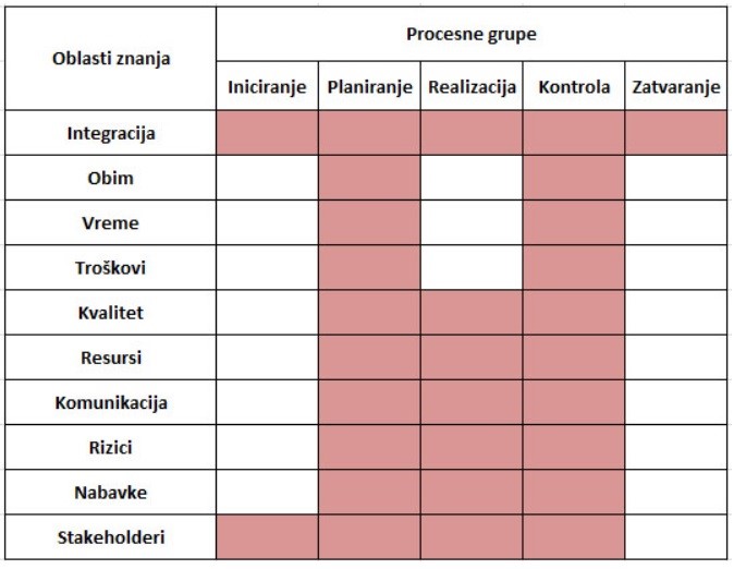 - 10 osnovnih oblasti znanja u okviru upravljanja projektima i
